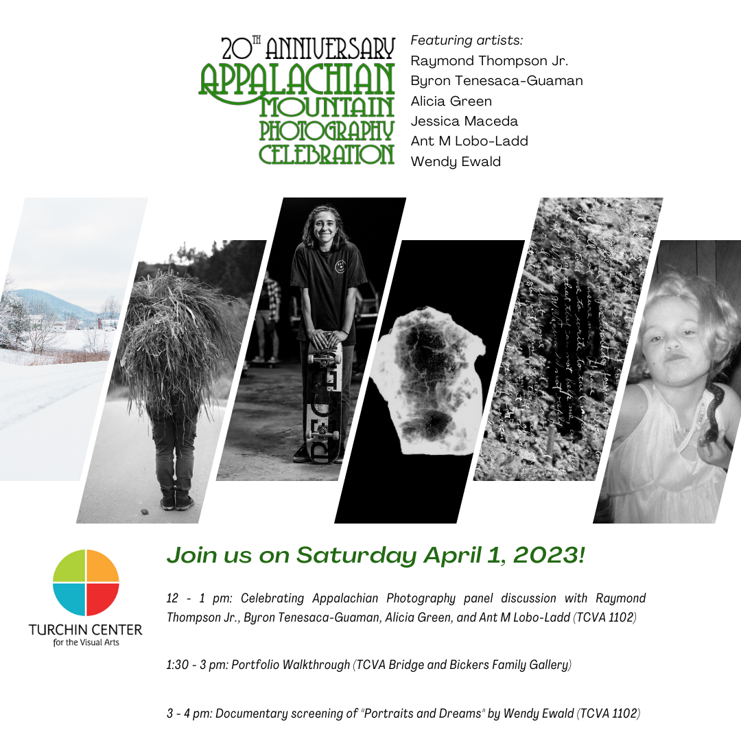 12:00 - 1:00pm. Celebrating Appalachian Photography panel discussion with exhibiting artists Raymond Thompson Jr., Ant M Lobo-Ladd, Byron Tenesaca, and Alicia Green